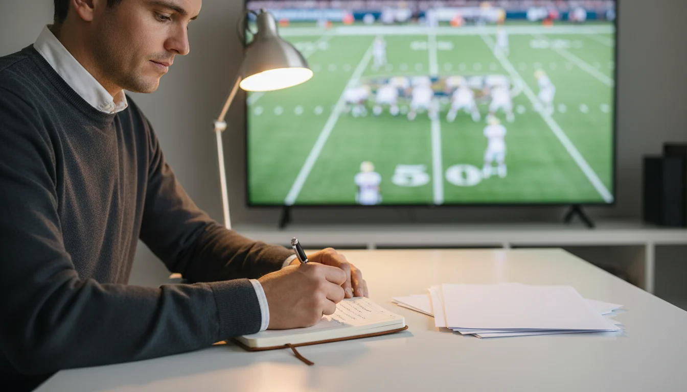 Hay dos tipos de apostadores de futbol americano. El primero abre la aplicacion el domingo por la manana, mira los partidos del dia, elige a los equipos que le gustan y apuesta una cantidad arbitraria. A veces gana, a veces pierde, y al final de la temporada no tiene ni idea de si salio en positivo o en negativo. El segundo hace exactamente lo contrario: define un presupuesto, investiga cada partido con datos concretos, compara cuotas entre plataformas y registra cada apuesta con la precision de un contable. El primero apuesta por intuicion. El segundo apuesta con estrategia.